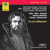 In Europe Ghiaurov was equally active, singing regularly at the Vienna State Opera from 1962, including a notable Khovansky / Khovanshchina in 1989. A frequent guest at the Salzburg Festival, he sang there the title roles of Boris Godunov and Don Giovanni (which he recorded with Klemperer), King Philip, Ramphis and Banquo, as well as Gorjančikov in Janáček’s From the House of the Dead under Abbado, a particularly powerful interpretation. At La Scala the range of his roles was considerable and extended to Zaccaria / Nabucco (1966),Creon / Medea (Cherubini), Silva / Ernani, Baldassare / La favorita, Marcel / Les Huguenots, the Grand Inquisitor / Don Carlo and, as late as 1997, Alvise / La Gioconda.
