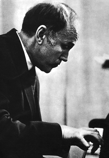 Sviatoslav Richter’s father was a pianist and composer who had studied in Vienna and then taught at the Odessa Conservatory. He was German, and Richter’s mother was his pupil. The boy was raised in an artistic environment, but from the age of four until he was seven, he lived with his aunt. When he returned to Odessa he began piano lessons, but his natural musical curiosity and talent led to him sight-reading operatic scores and learning empirically. To earn money, from the age of fifteen to seventeen he was accompanist at the House of Sailors in Odessa, then made his solo debut and became accompanist to the Academic Opera and Ballet Theatre.