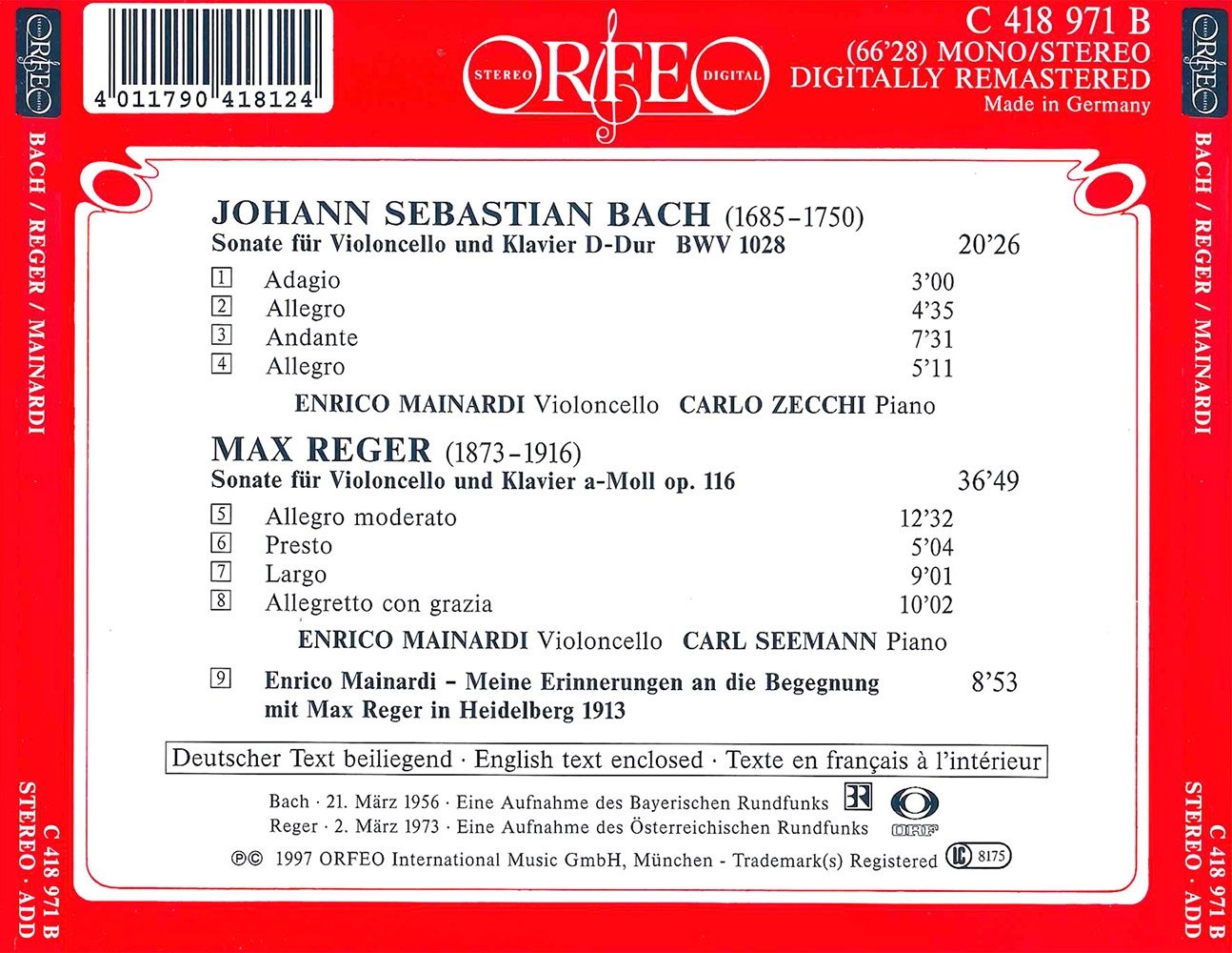 Viola da Gamba Sonata in D Major, BWV 1028 (arr. for cello and piano)